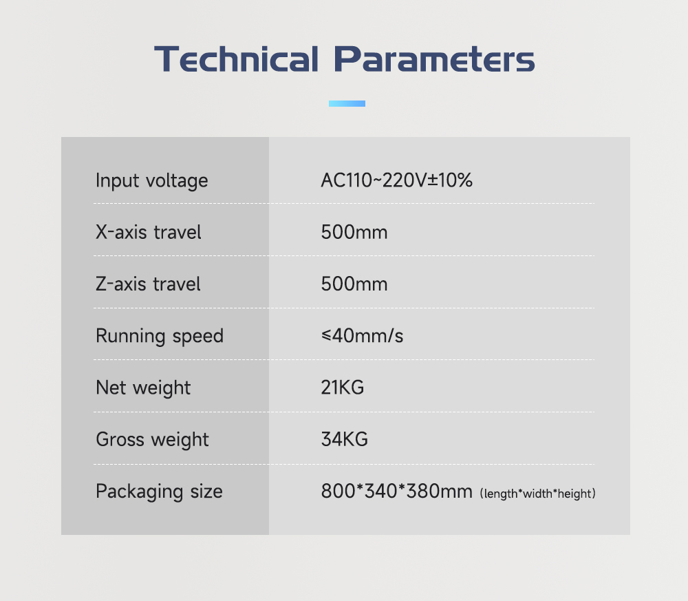 X and Y travel is 500mm, focal length can be fixed and save cost.