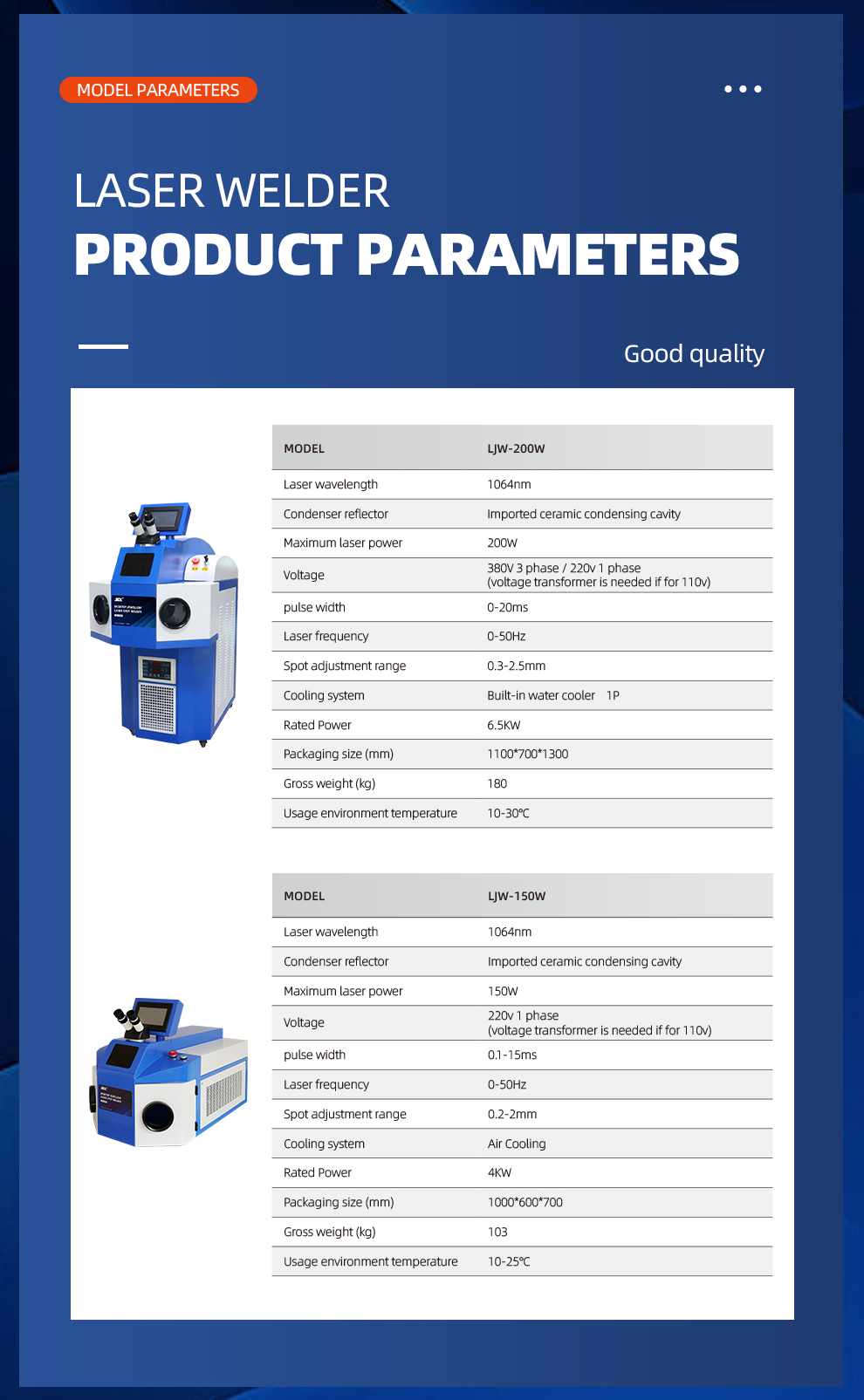 Spot Adjustment Range: 0.2-2mm for 150W, 0.3-2.5mm for 200W
