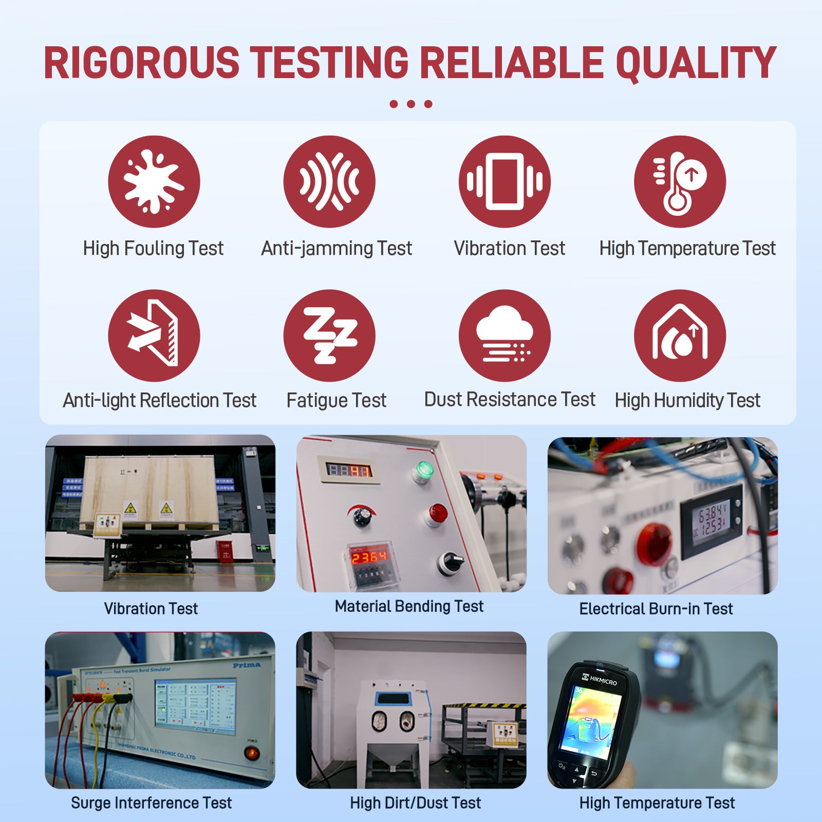 Durability Tested: Heavy dirt, vibration, high temperature, anti-reflection, anti-interference, dustproof, high-humidity, and fatigue tests guarantee quality assurance.