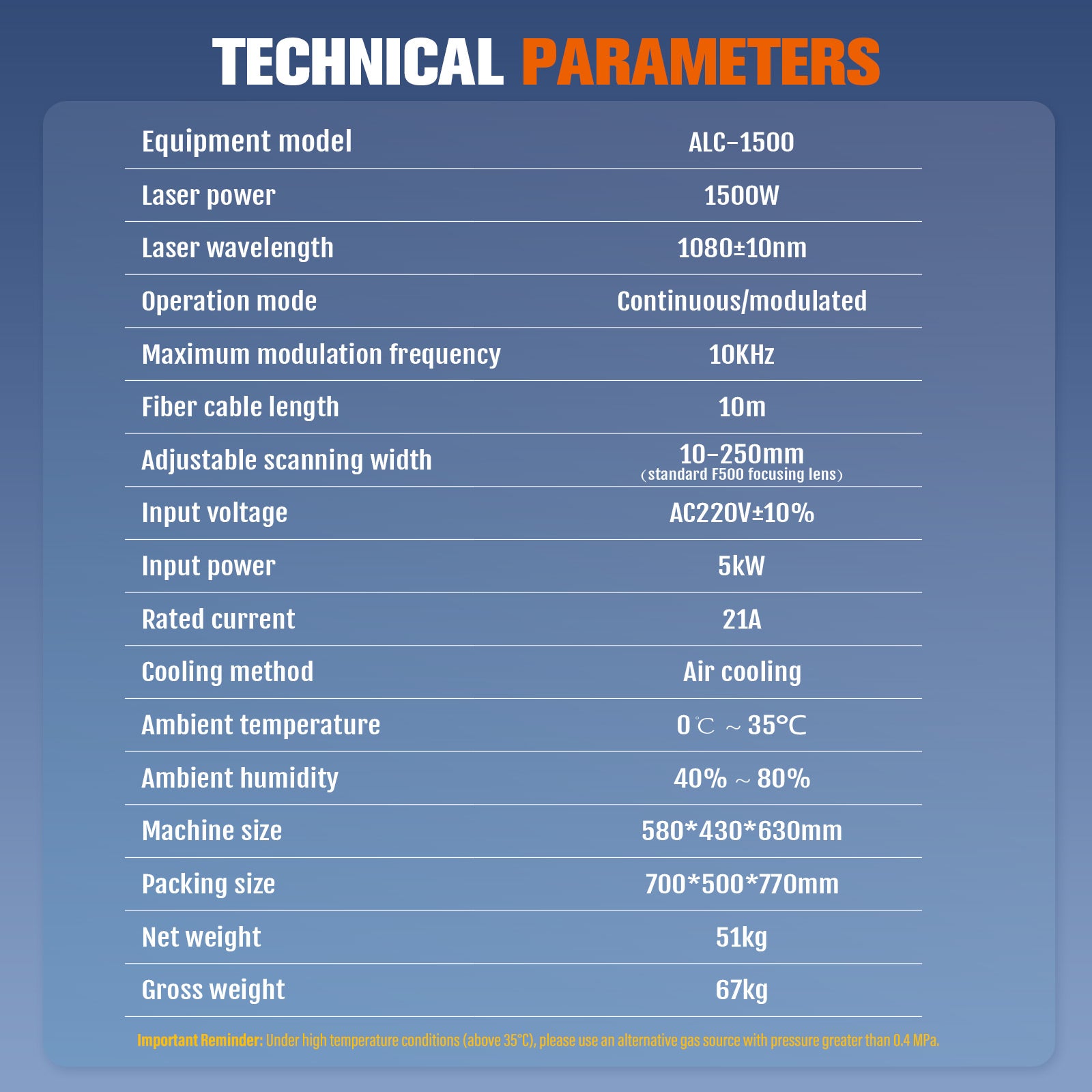 - Laser Wavelength: 1080±10nm